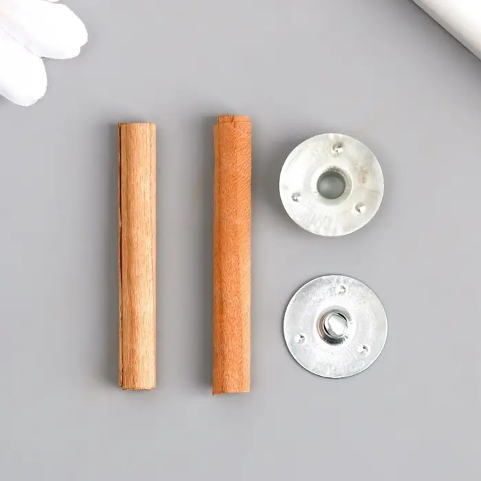 Погрузитесь в мир творчества и уюта с набором фитилей для свечей, который станет вашим верным помощником в создании атмосферных композиций! Эти фитили с металлическими держателями, выполненные из натурального дерева, обеспечивают идеальное горение и добавляют изысканности вашим свечам.