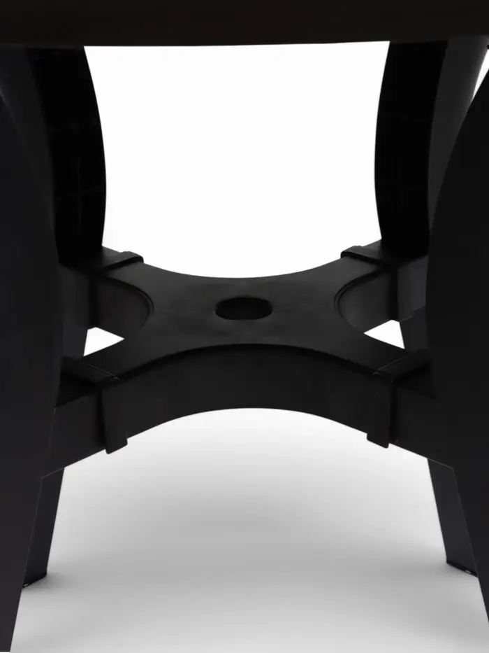 - Максимальная устойчивость: изогнутые ножки с крестовиной и регулировкой высоты обеспечивают надежную опору даже на неровных поверхностях.