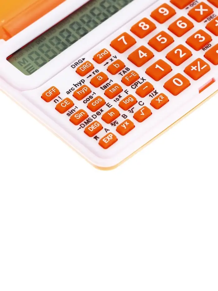 Этот белый и красный научный калькулятор станет для вас незаменимым помощником в учёбе и работе. Компактный дизайн и практичность делают его идеальным для студентов и профессионалов, нуждающихся в точных вычислениях.
