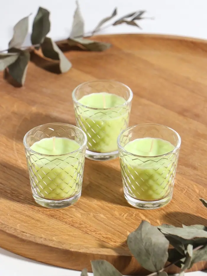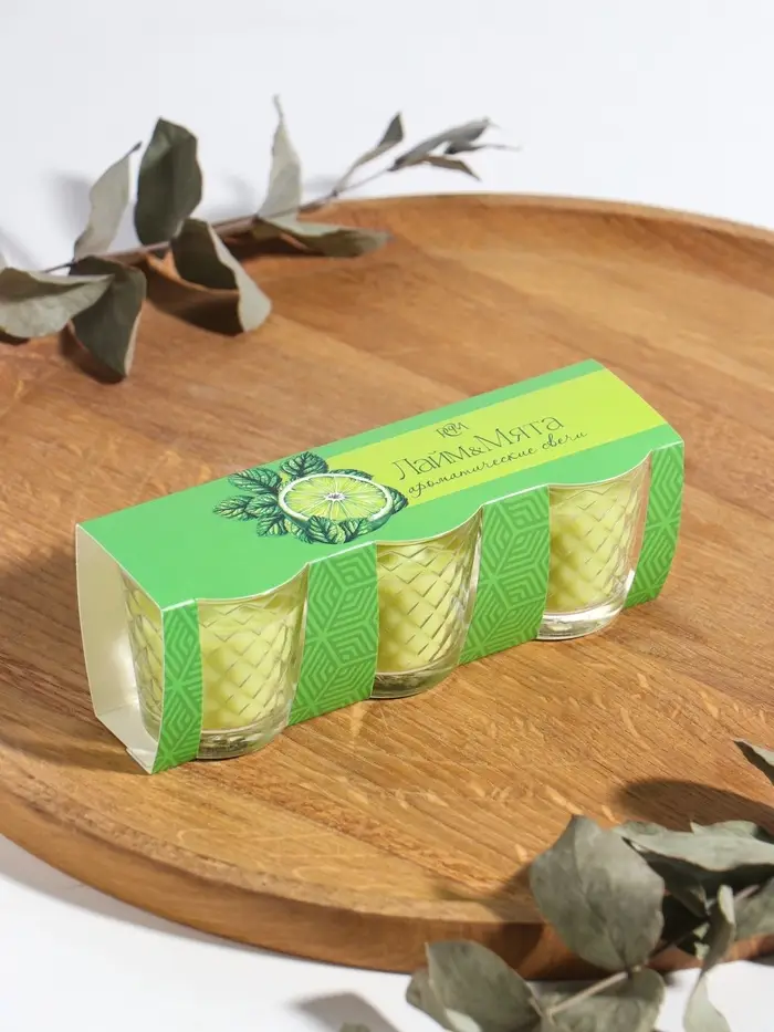 Ароматическая свеча в стакане, набор 3 шт., по 50 мл, 10 ч, 32 г, лайм-мята