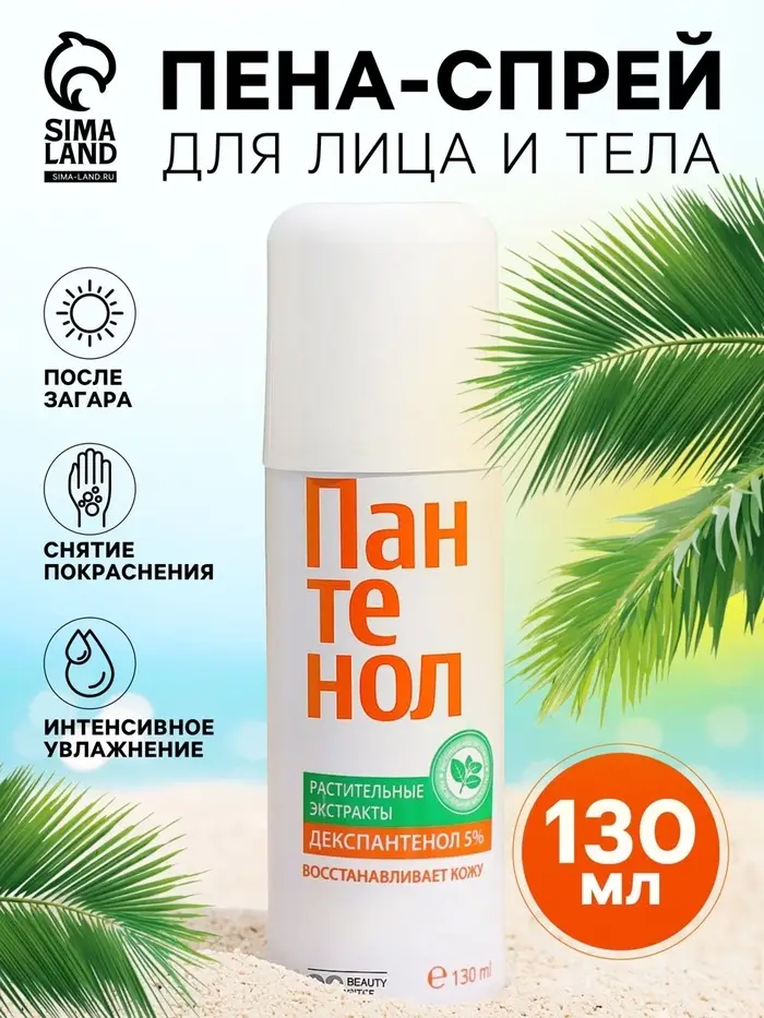 Пена-спрей для лица и тела Пантенол ВС, помощь при солнечных и термических ожогах, 130 мл