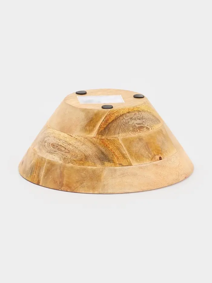 - Дерево манго — натуральность и долговечность: Чаша изготовлена из цельного массива манго. Эта древесина ценится за красивую текстуру, прочность и устойчивость к образованию трещин. Поверхность отшлифована до идеальной гладкости, подчеркивая теплоту природного материала.