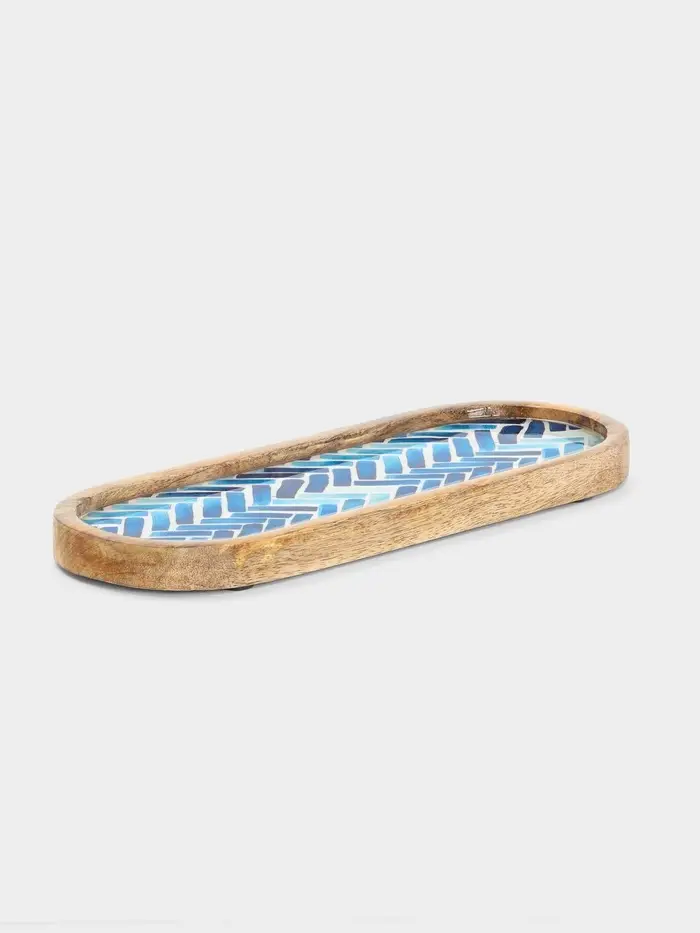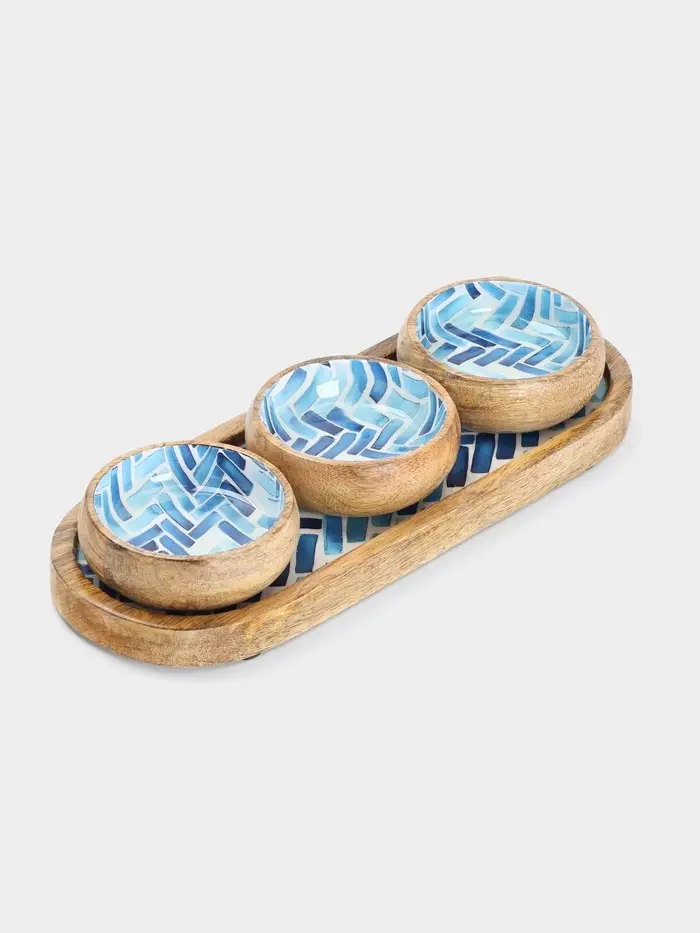Набор розеток на подносе «Синяя мозаика», 3 шт., 33.5×13×6.5 см, дерево манго