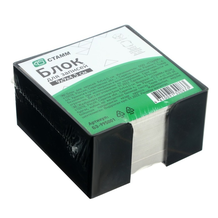 Блок бумаги для записей Стамм "Офис", 9 x 9 x 4,5 см, в пластиковом боксе, 60 г/м²
