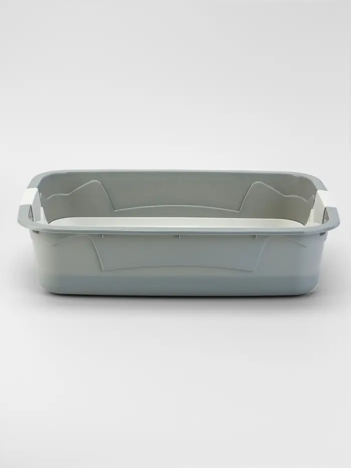 - Сдержанный дизайн: Серо-белый цвет сочетается с разными интерьерами. Лаконичная форма вписывается в пространство дома или ванной комнаты, не выделяясь как «кошачий аксессуар».