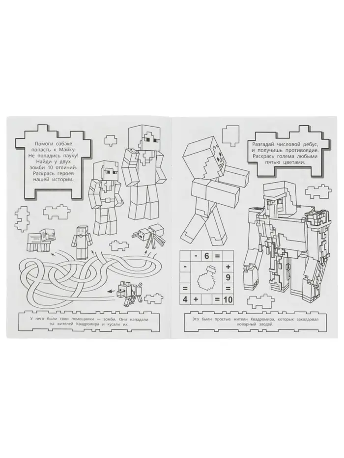 - 16 страниц с детализированными изображениями и заданиями на тему «Майнкрафт».