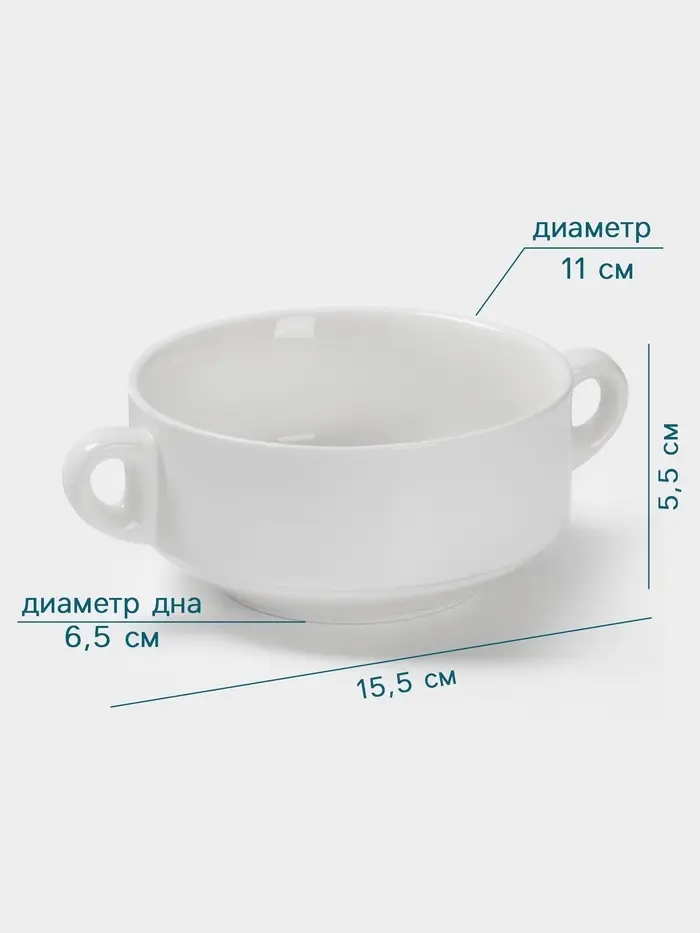 Бульонница Добрушский завод «Бельё», 300 мл, d=10.5 см, фарфор, белая