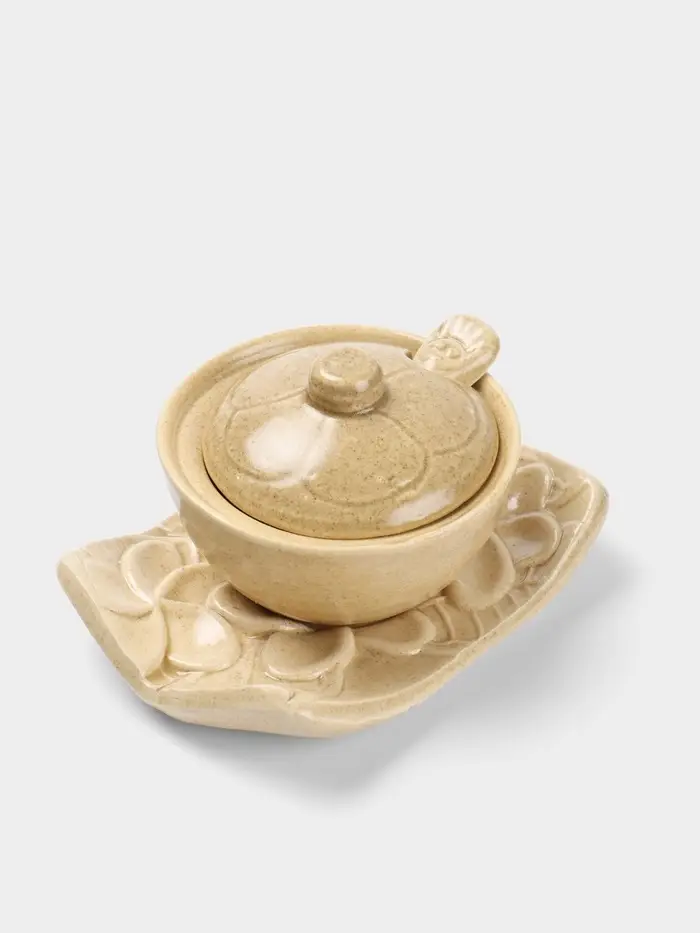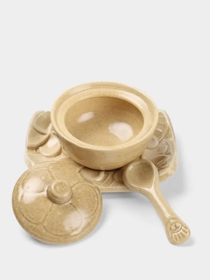 Качество деталей: Все элементы — сам соусник, крышка и подставка — выполнены из толстостенной керамики, устойчивой к сколам и перепадам температур. Глазурованная поверхность легко отмывается. Этот соусник станет надежным помощником на кухне и украсит ваш стол на долгие годы.