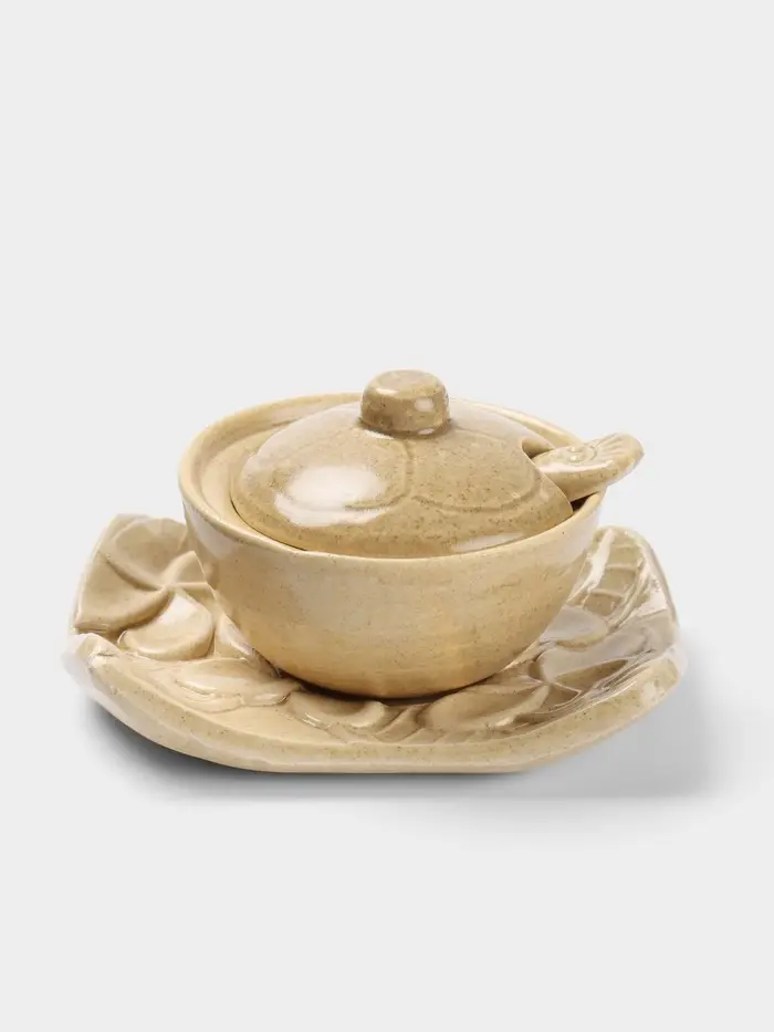 Соусник с крышкой на подставке «Классика», 11×8×7 см, керамика, бежевый