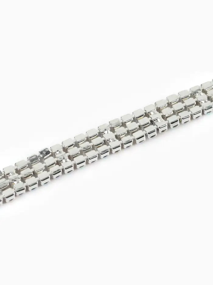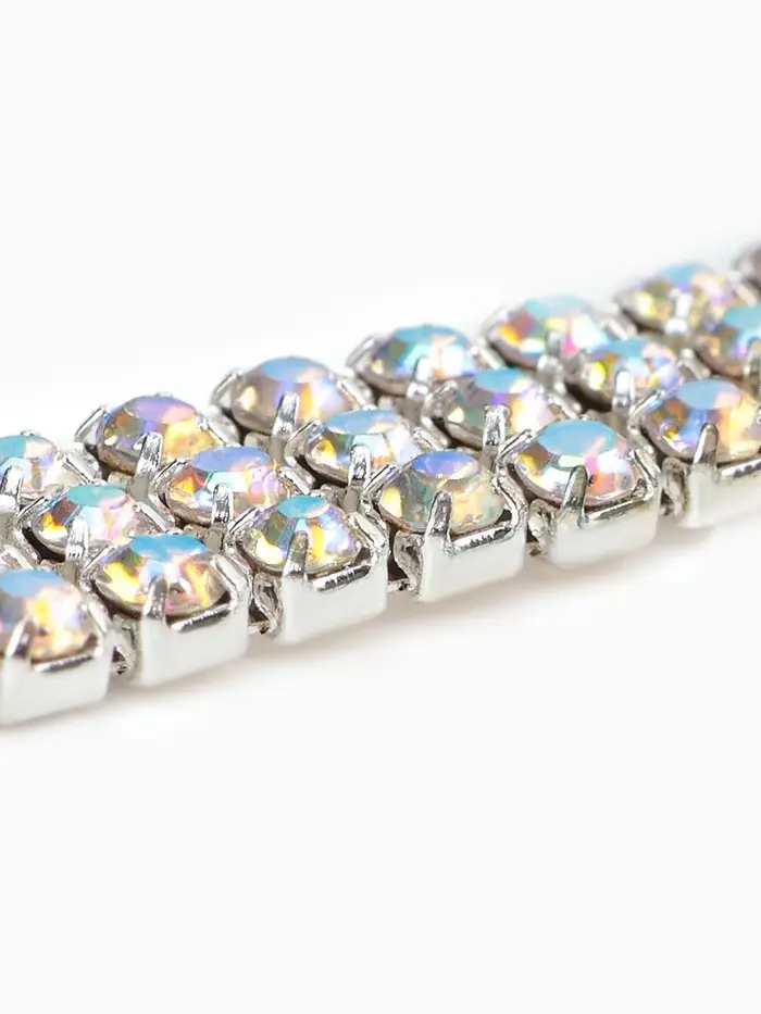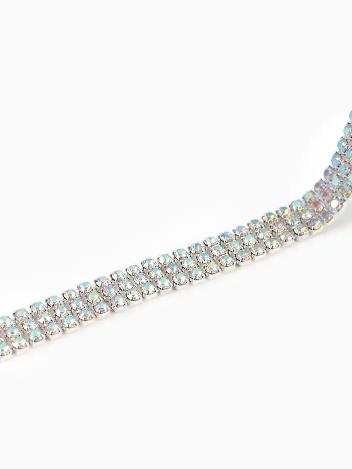 - Три ряда страз, плотно уложенных в одной линии для насыщенного сияния.