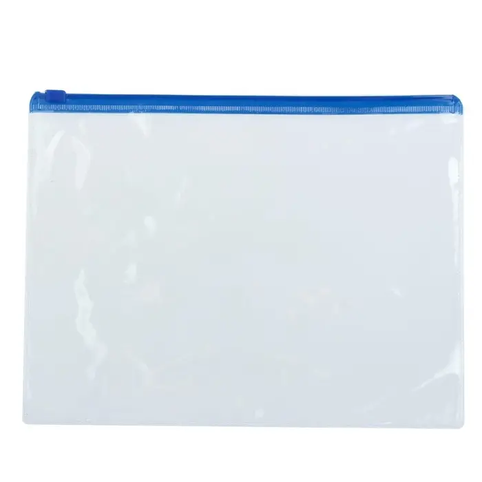 Папка-конверт на ZIP-молнии A4, 150 мкм, Calligrata, прозрачная, синяя молния