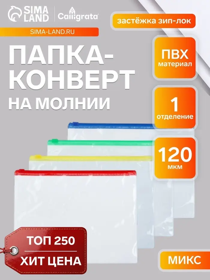 Папка-конверт на молнии Calligrata А6 (175×130 мм), с сеткой внутри, МИКС