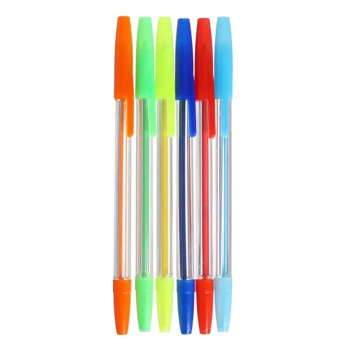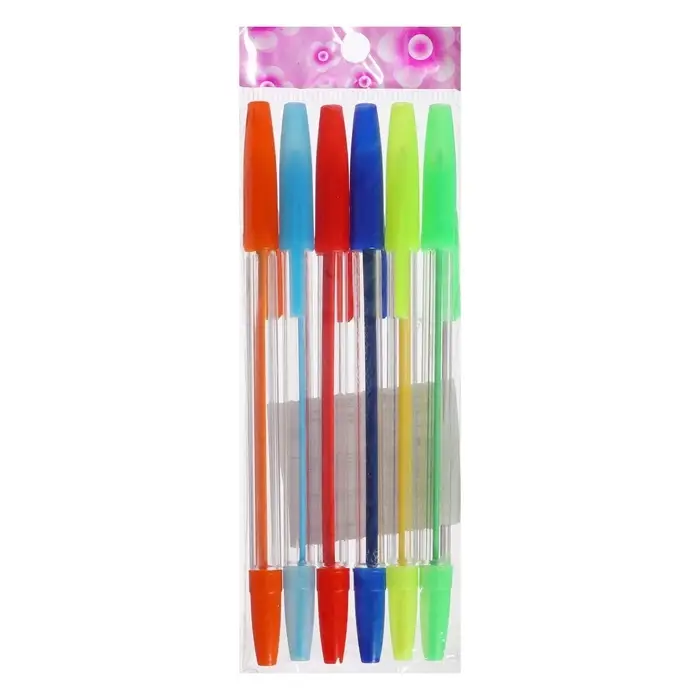 Набор ручек шариковых, 6 цветов, корпус прозрачный с цветными колпачками