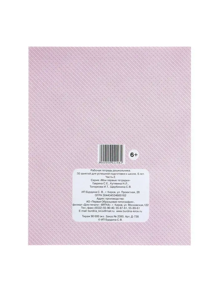 Рабочая тетрадь для детей 6 лет «30 занятий для успешной подготовки к школе», часть 2