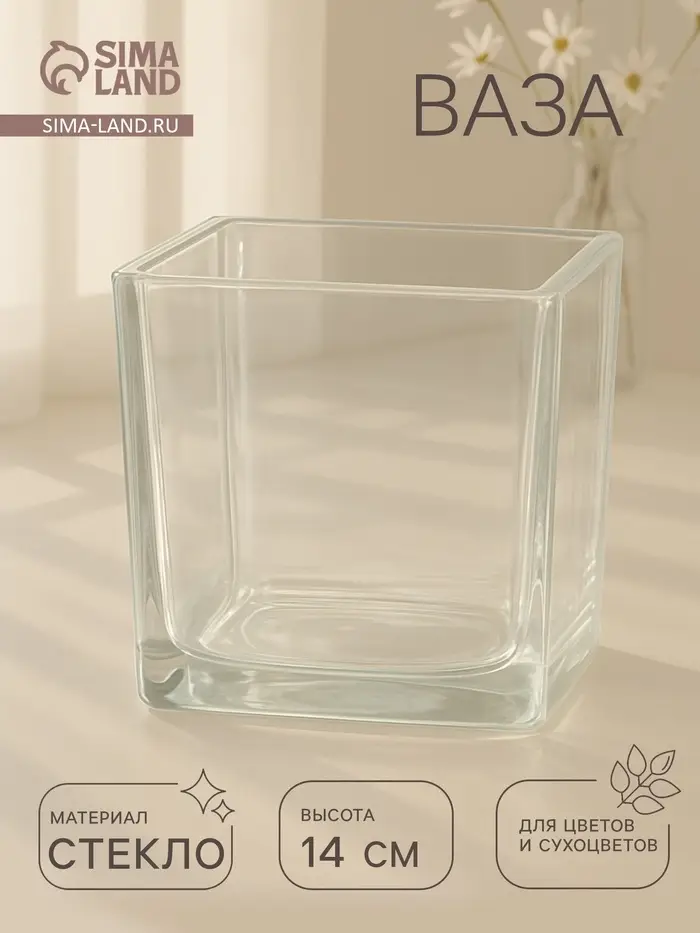 Создайте уникальный стиль: Эта ваза станет акцентом вашего интерьера, позволяя вам экспериментировать с цветами и композициями. Прозрачное стекло придаёт лёгкость, а квадратная форма добавляет современности. Подарите себе или близким возможность наслаждаться красотой природы в вашем доме!