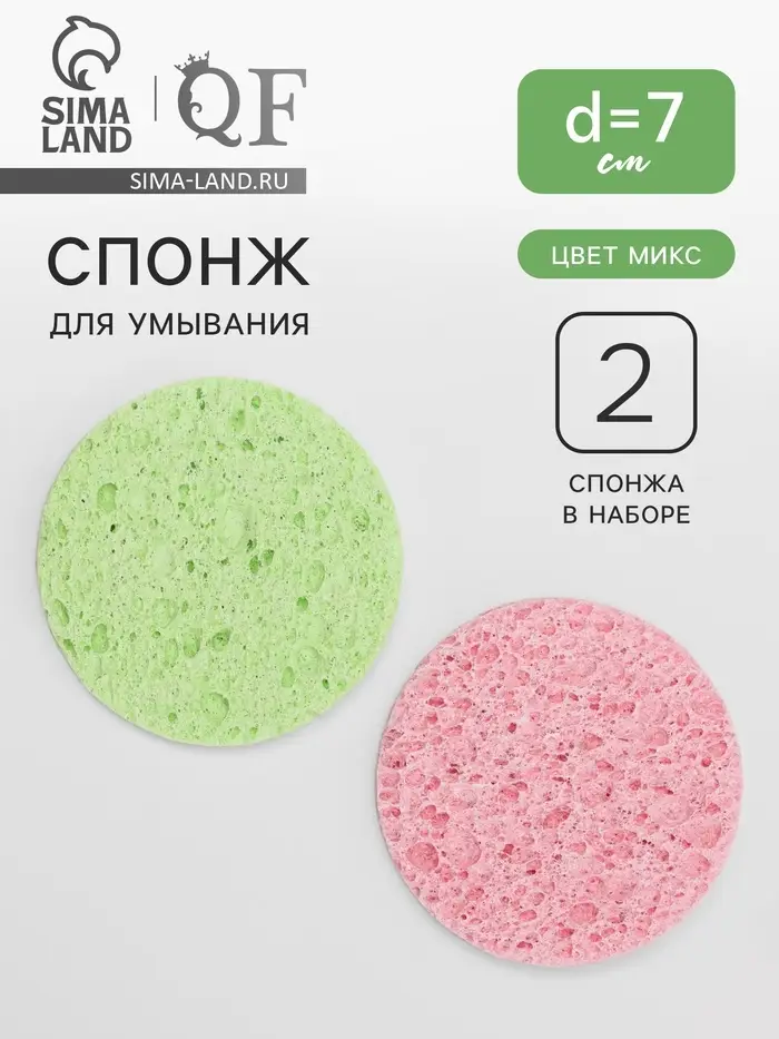 Набор спонжей для умывания «Мягкость», d=7 см, 2 шт., МИКС