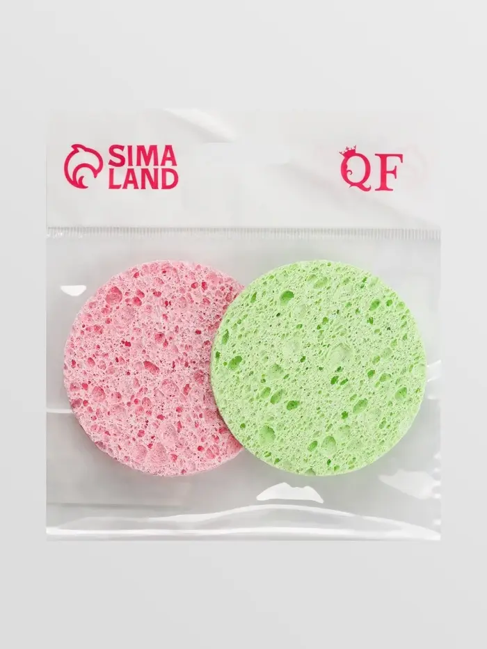 - В наборе два круглых спонжа диаметром 7 см в ассорти цветов.