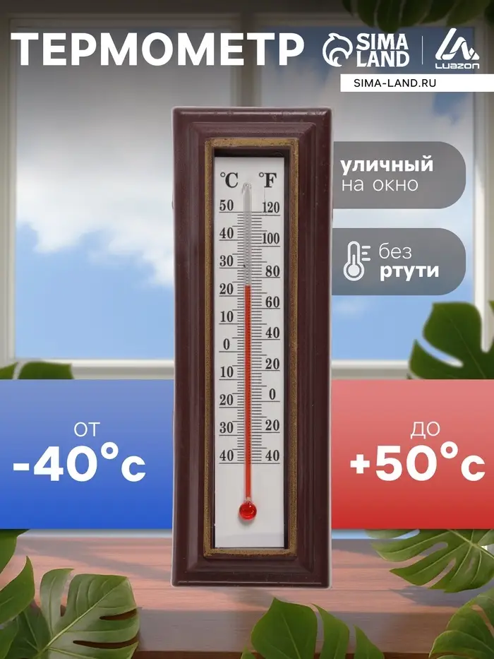 Термометр уличный «Фасадный малый», на окно, от -50° до 50 °C, 40×6 см