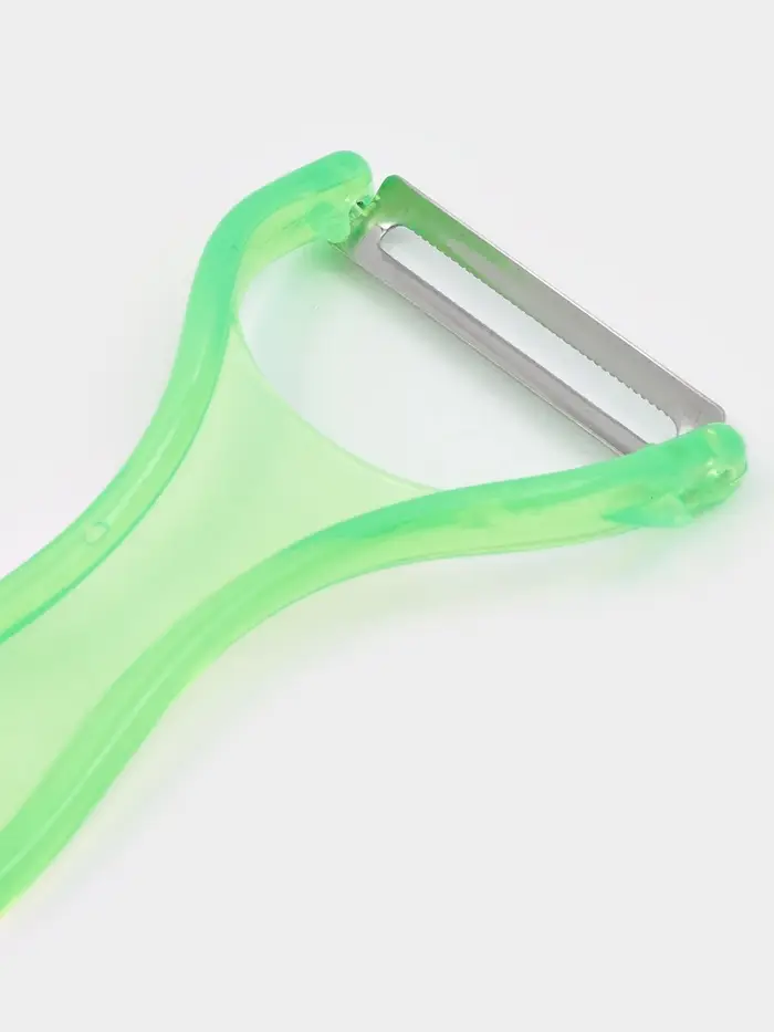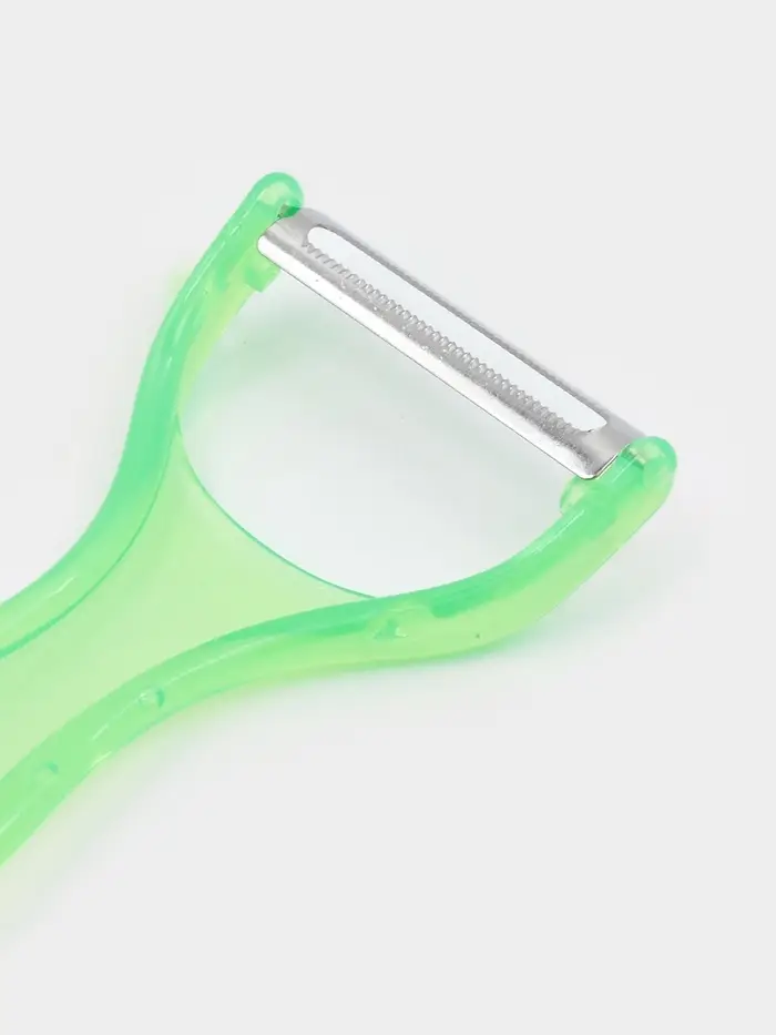При использовании овощечистки двигайте нож по направлению от плода, держа его под углом примерно 20 градусов. Позвольте лезвию зацепиться за кожуру, не нужно давить на плод. Позволяет чистить лук без слез - при чистке лука всегда начинайте от корешка и двигайте нож вниз.