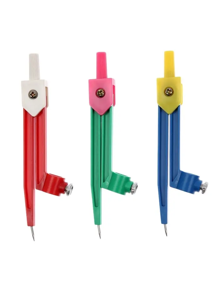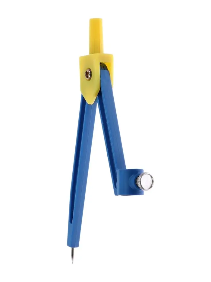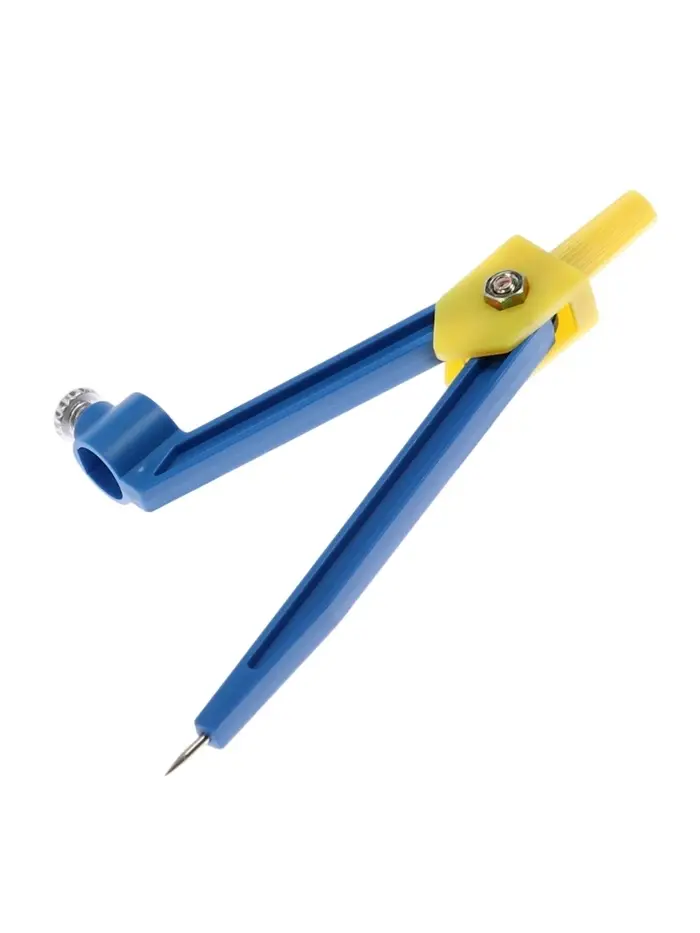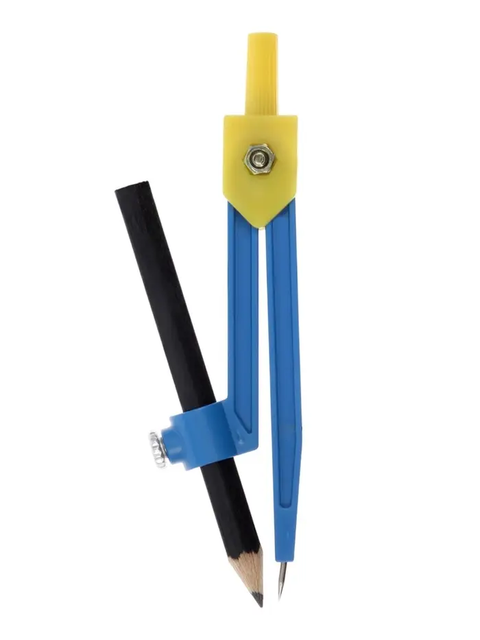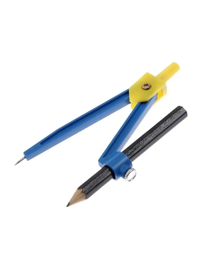Этот лёгкий циркуль из пластика с конструкцией «козья ножка» удобен для быстрого построения окружностей. В комплекте есть карандаш, что делает набор готовым к использованию прямо после покупки.