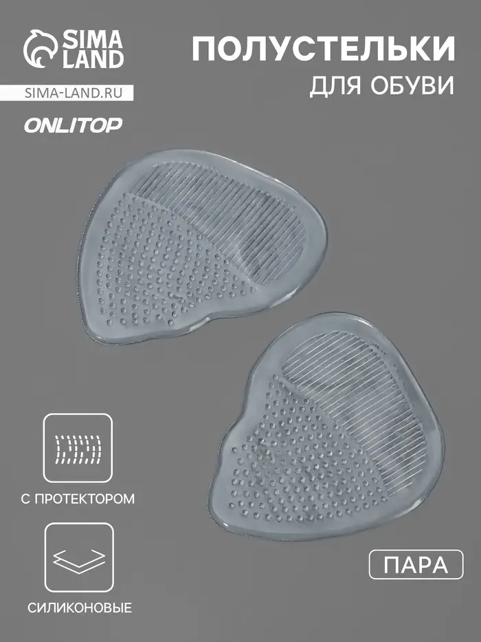 Полустельки для обуви, с протектором, силиконовые, 9.5×6.3 см, пара, прозрачные