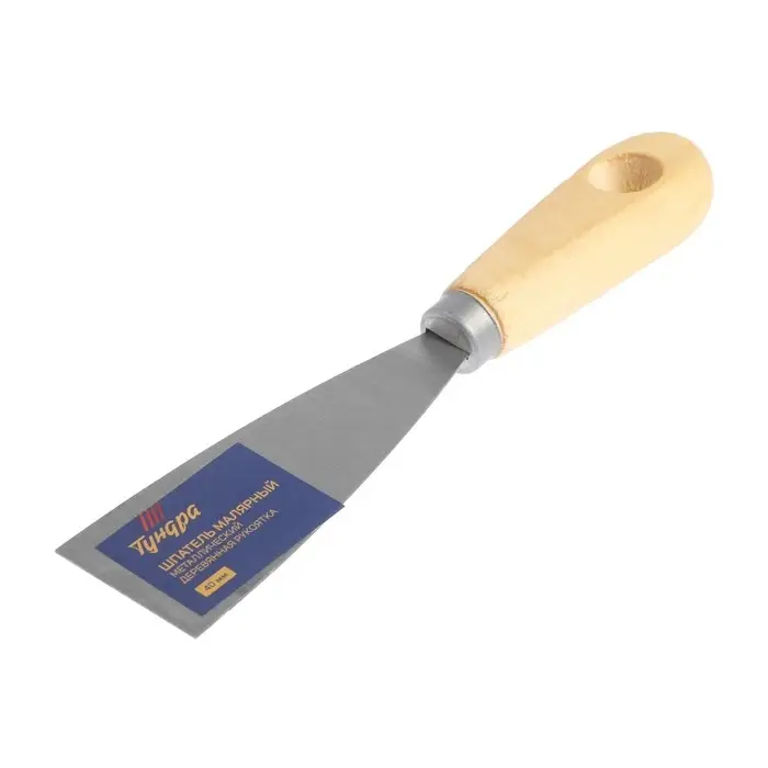 Шпатель малярный ТУНДРА, металлический, деревянная рукоятка, 40 мм
