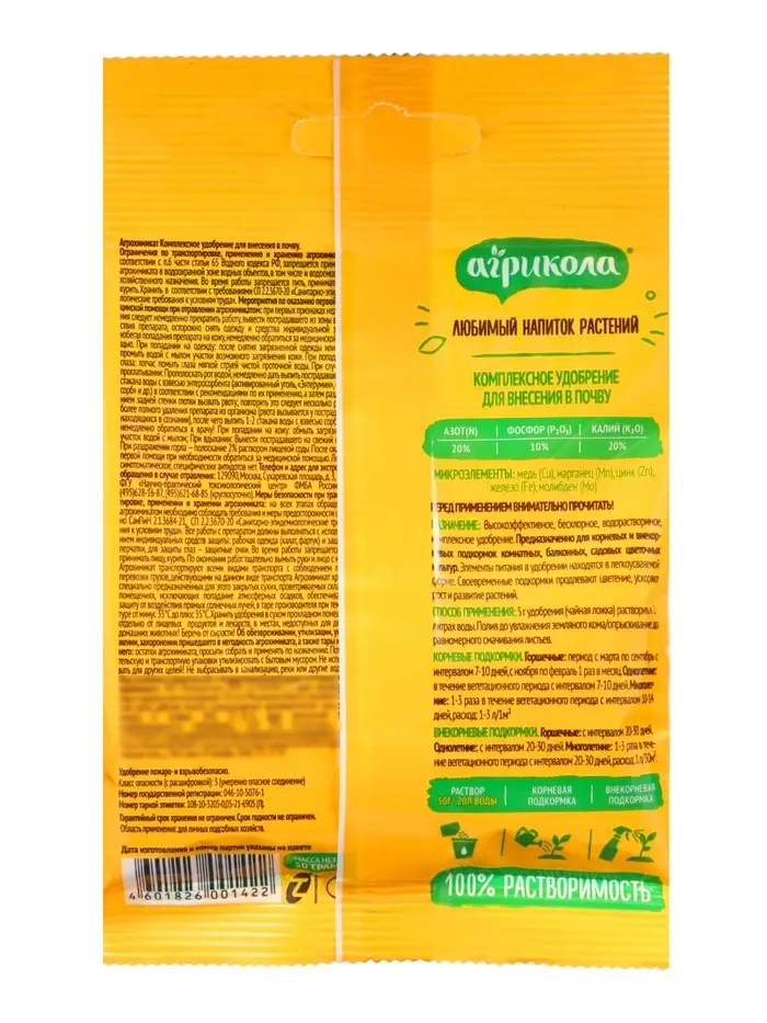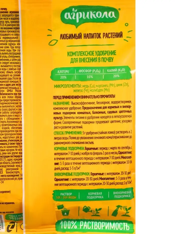 Содержит все необходимые растению макро- и микроэлементы в оптимальном соотношении.