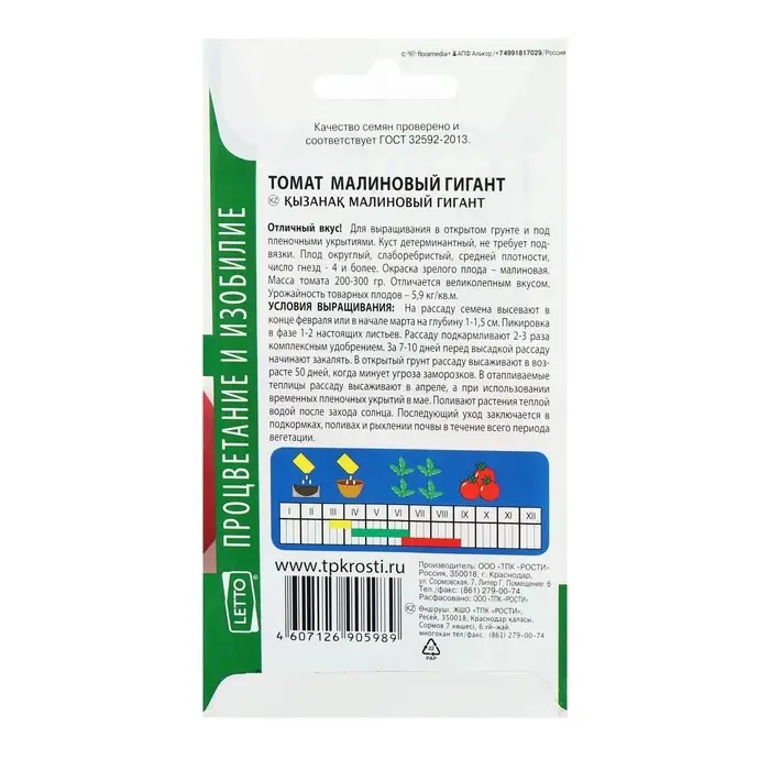 Семена «Томат Малиновый гигант», низкорослый, 0,1 г выращивается в открытом грунте и под плёночными укрытиями.
