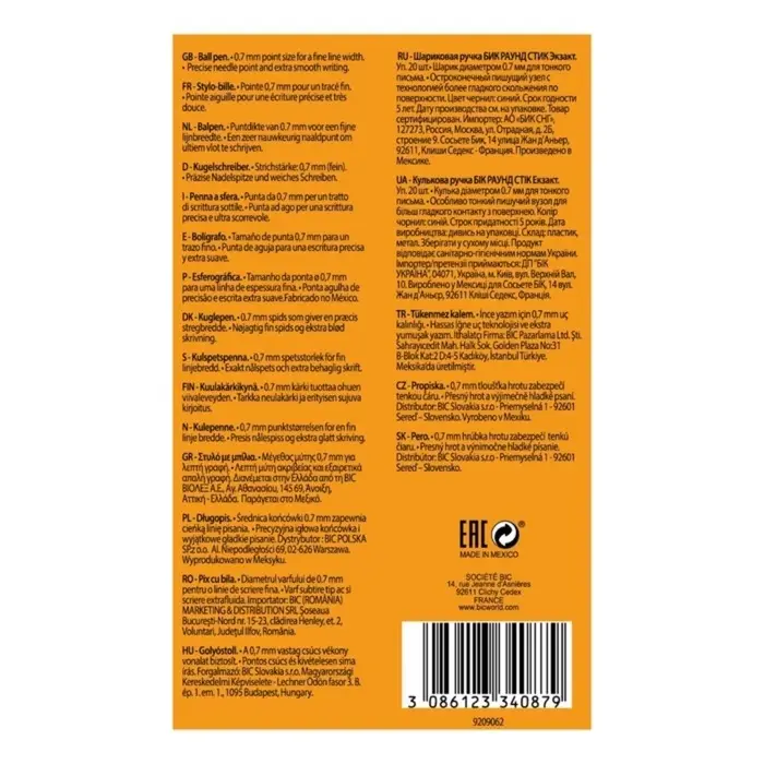 Ручка шариковая BIC. Round Stic Exact, синий стержень, узел 0.7 мм, резиновый упор, одноразовая, серый корпус