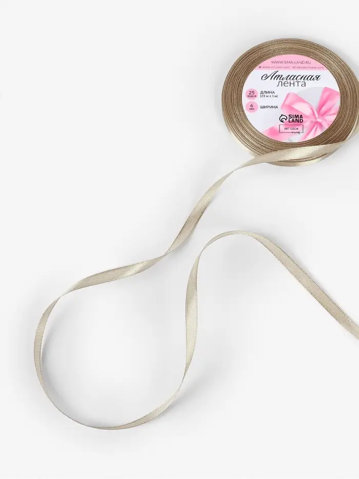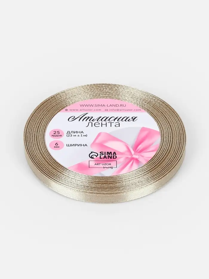 Лента атласная, 6 мм, 23±1 м, тёмно-кремовая №268