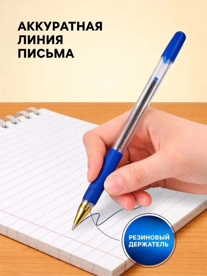 Шариковая ручка с тонким пишущим узлом — это выбор для аккуратного почерка и работы с мелким шрифтом. Она подходит для большинства задач. Прозрачный корпус всегда показывает остаток чернил, а мягкий резиновый упор снижает давление на пальцы при долгом письме.