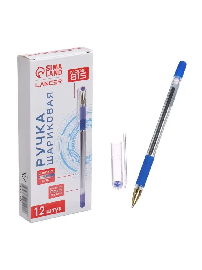 Ручка шариковая LANCER, синий стержень, узел 0.5 мм, прозрачный корпус, резиновый упор