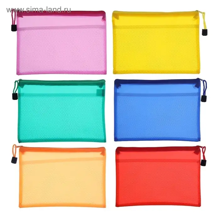 Папка-конверт на молнии Calligrata А6 (175×130 мм), с сеткой внутри, МИКС