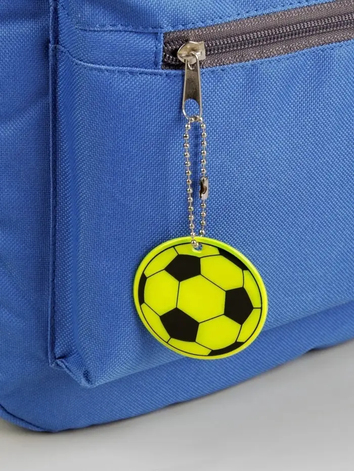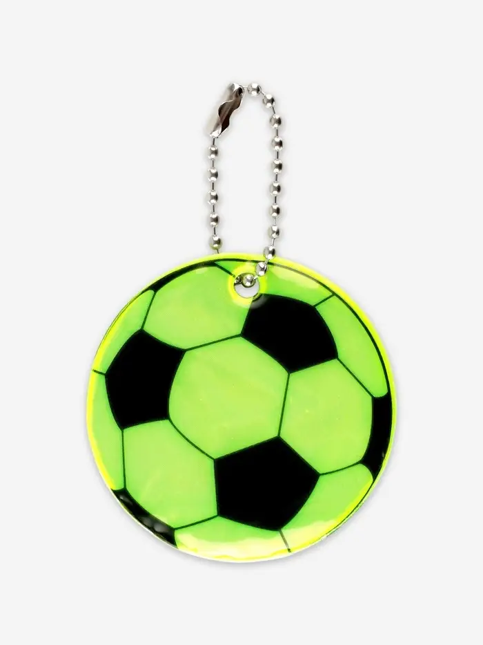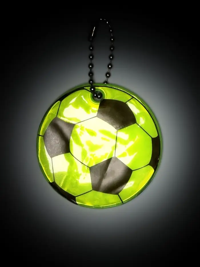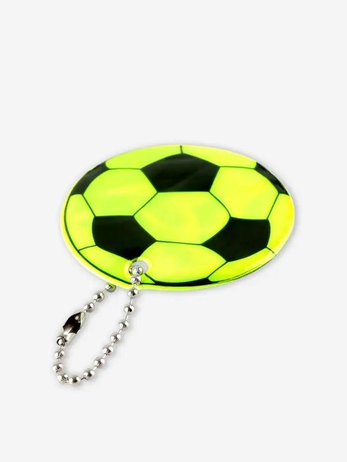 Светящийся элемент с дизайном футбольный мяч станет незаменимым аксессуаром для прогулок в тёмное время суток. С ярким жёлтым цветом и компактным двойным отражением, этот подвесной брелок из ПВХ привлекает внимание и повышает безопасность на дороге.