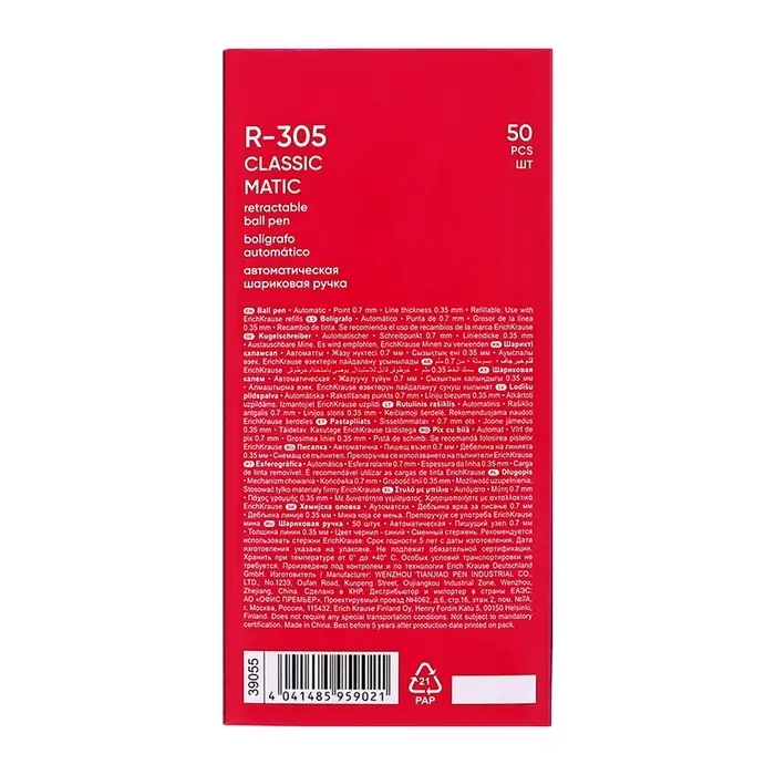Автоматическая шариковая ручка ErichKrause R-305 — это лаконичный и надёжный инструмент для ежедневных записей. Её продуманная форма и долгий ресурс помогают сосредоточиться на задаче, не отвлекаясь на мелочи.