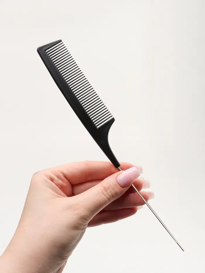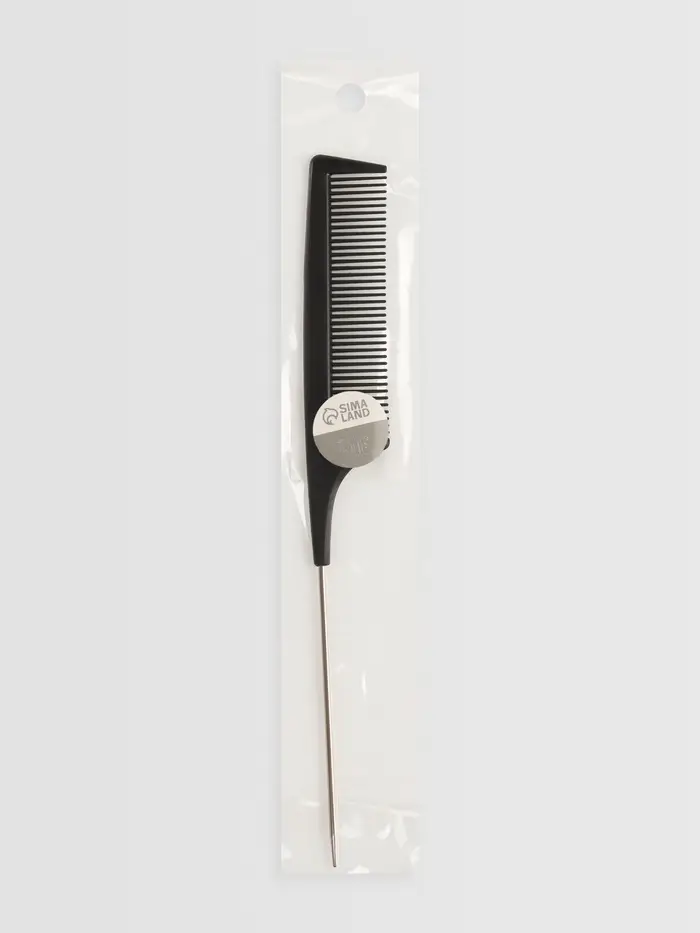 Расчёска антистатическая, 22×3(±1) см, с металлическим хвостиком, карбон, чёрная