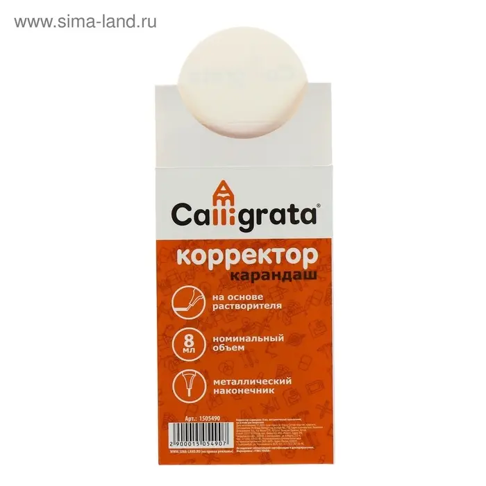 Корректор-карандаш 8 мл, металлический наконечник, на основе растворителя