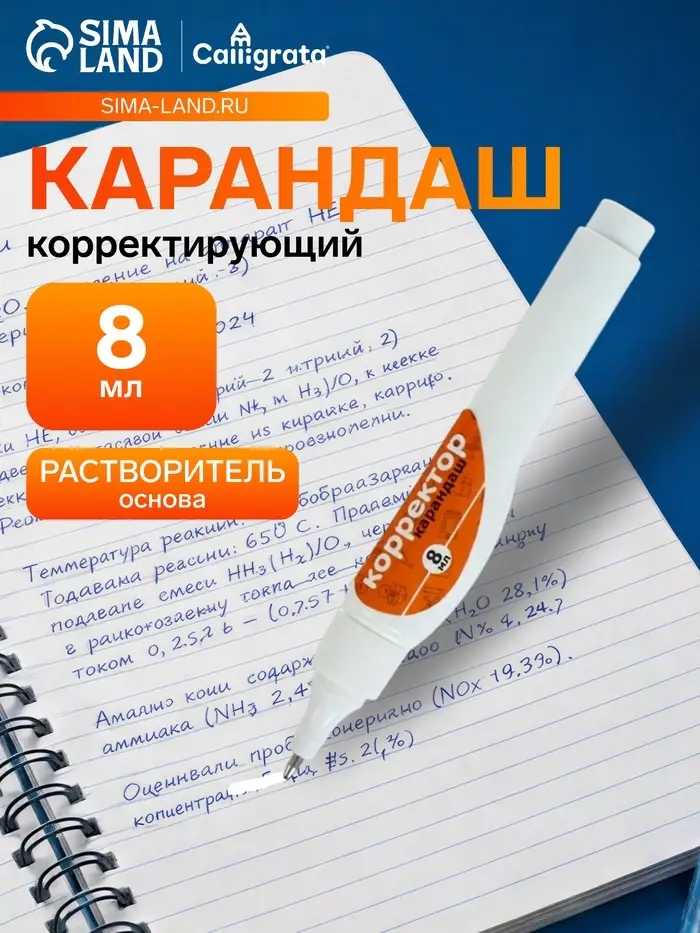 Ручка-корректор предназначена для точных исправлений текста на любых типах бумаги.