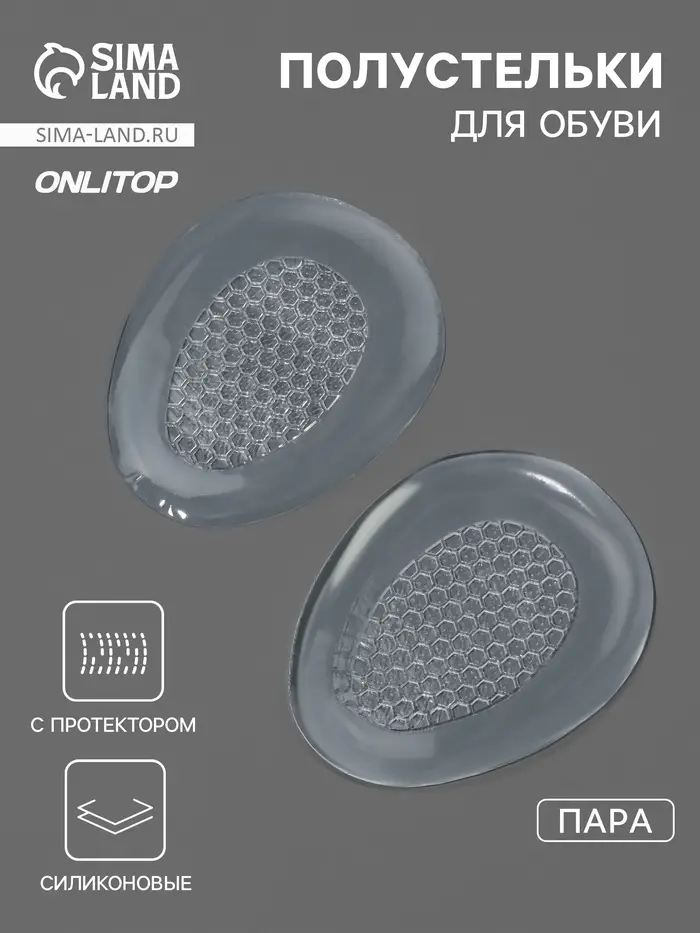 Полустельки для обуви, с протектором, силиконовые, 8.5×6.7 см, пара, прозрачные