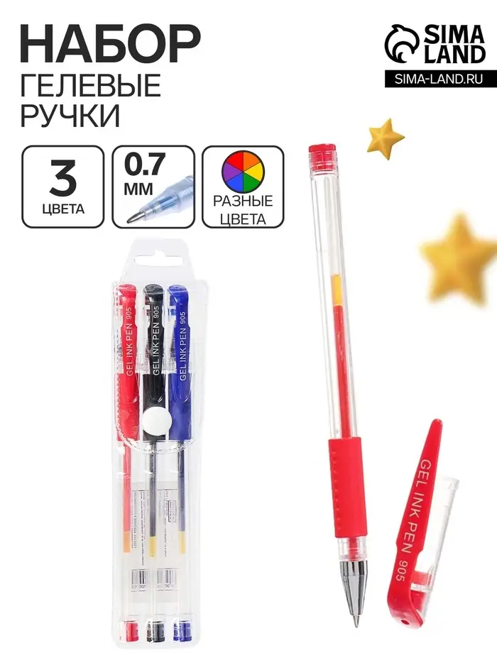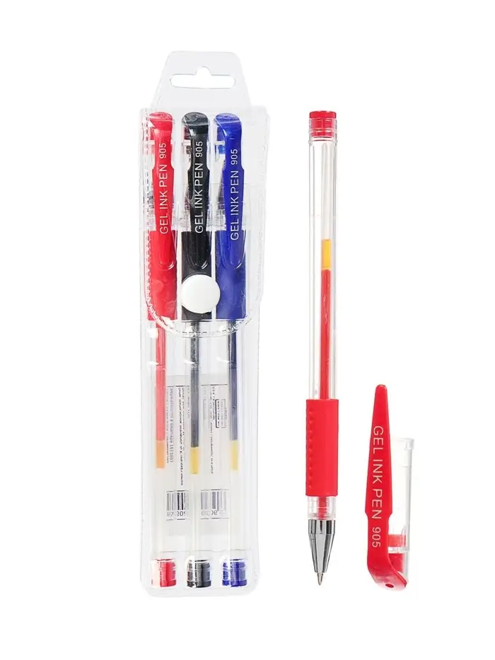 - Три неавтоматические гелевые ручки с классическим колпачком.