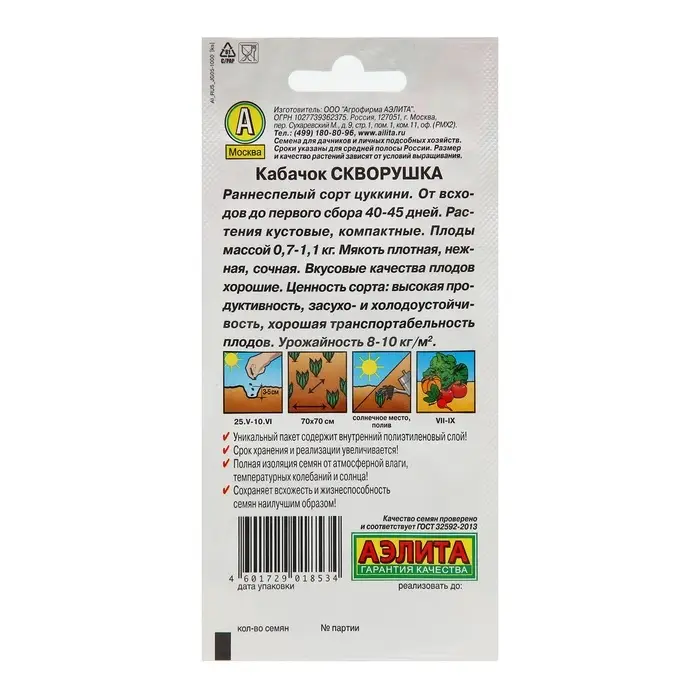 Семена Кабачок цуккини «Скворушка», «Лидер», 1.5-2 г