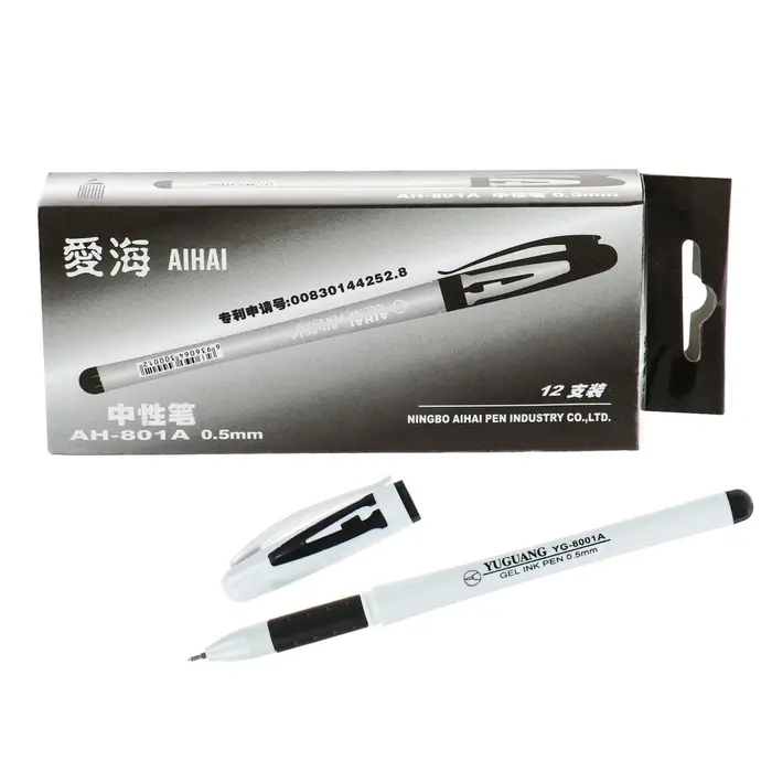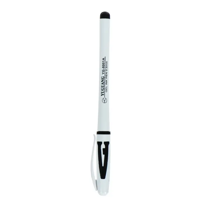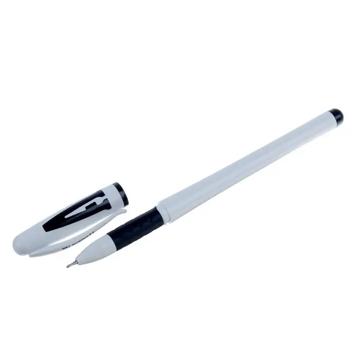 - Неавтоматическая гелевая ручка с чёрным стержнем и защитным колпачком.