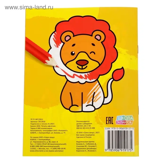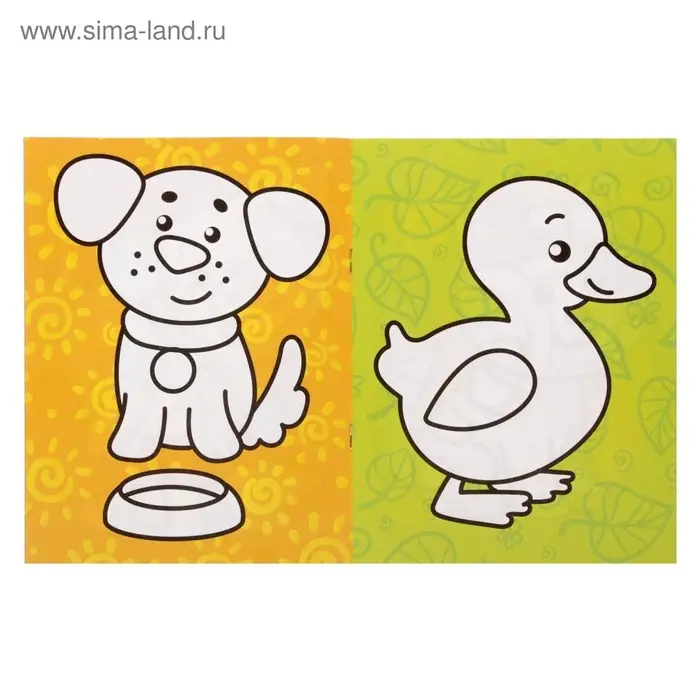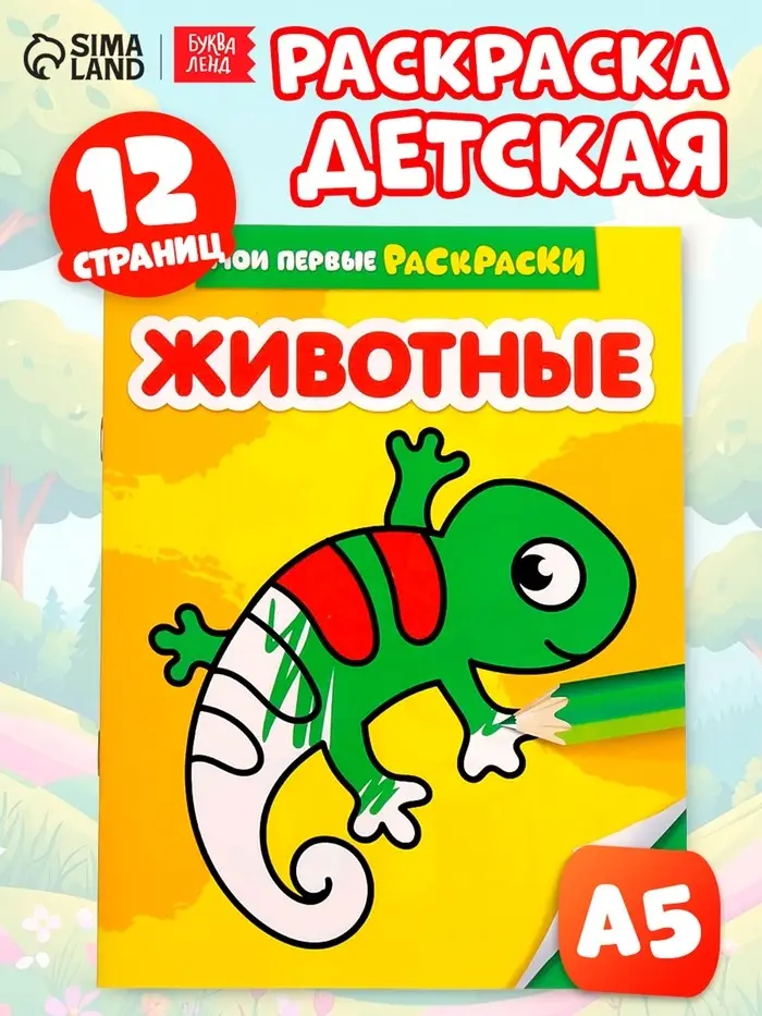 - 12 страниц с изображениями животных позволяют ребёнку проявить фантазию и потренировать навыки раскрашивания.