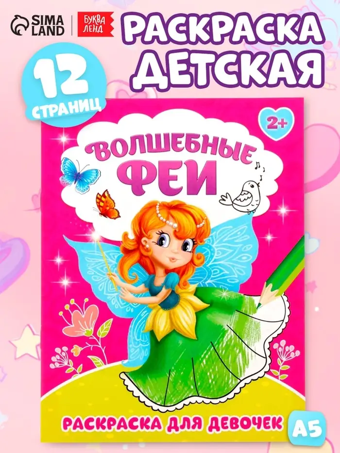Раскраска для девочек «Волшебные феи», 12 стр.