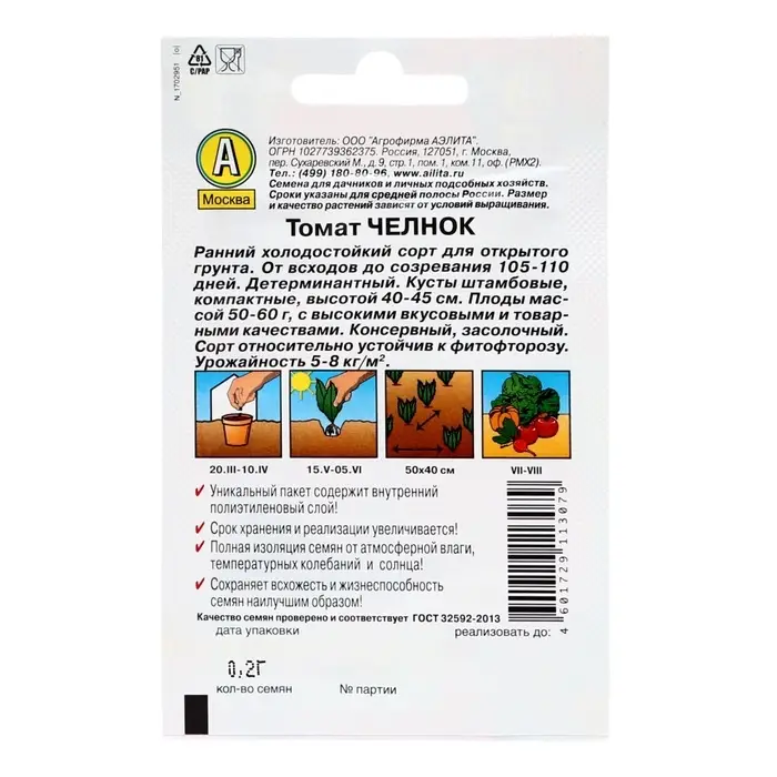 Семена Томат «Челнок Лидер», 0.2 г, детерминантный, низкорослый, «Аэлита»