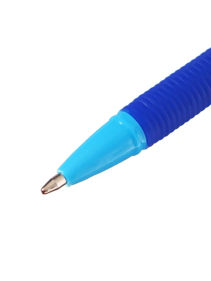 Синяя шариковая ручка подойдёт тем, кто предпочитает привычный формат письма в сочетании с более уверенным хватом. Яркий корпус помогает быстро находить ручку среди канцелярии, а мягкий упор снижает напряжение пальцев во время долгих записей. Такой вариант подходит для учебных конспектов, рабочих пометок и ежедневных задач, где важны устойчивый штрих и аккуратный результат.
