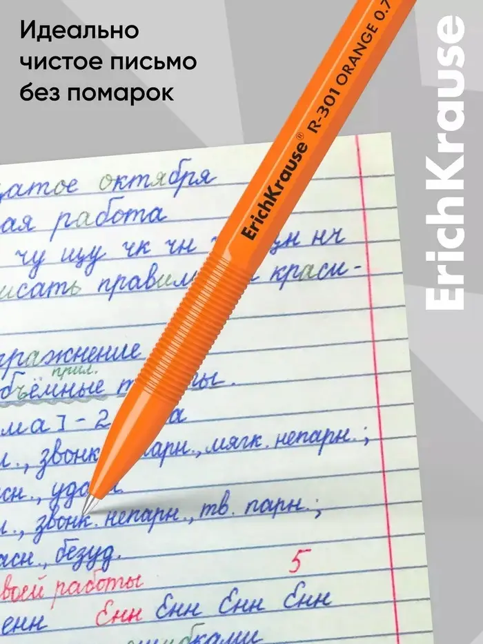 Ручка шариковая ErichKrause. R=301 Orange Stick, зелёный стержень, узел 0.7 мм