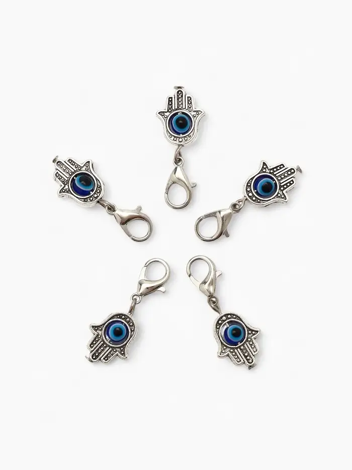 Шарм для браслета на карабине «Оберег рука Хамса», синий в серебре