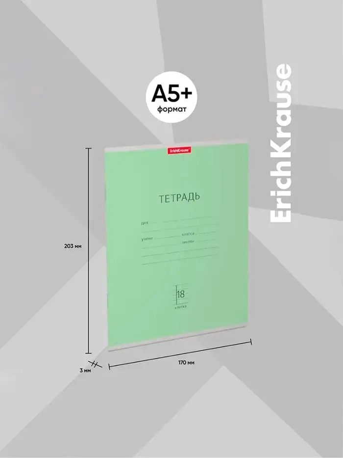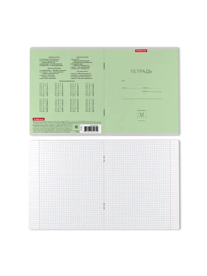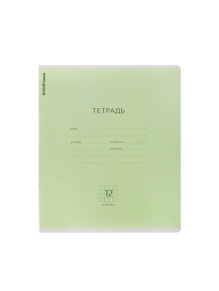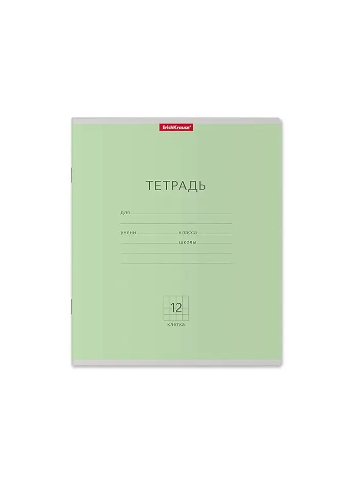 Тетрадь 12 листов в клетку ErichKrause «Классика», обложка мелованный картон, зелёная
