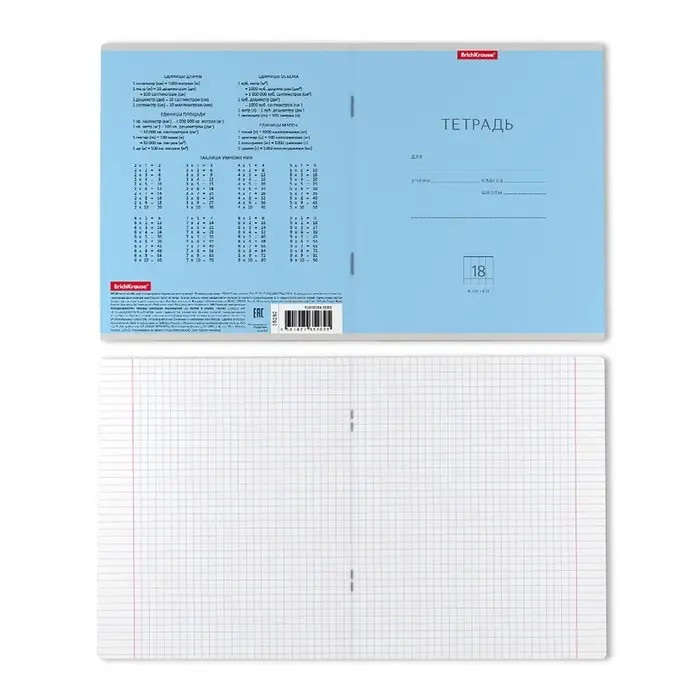 Тетрадь школьная ученическая формата А5+ (170х203 мм). Обложка из высококачественного мелованного картона плотностью 180 г/м2. В блоке 18 листов в клетку с полями. Бумага офсетная плотностью 60 г/м2. Цвет линовки - синий. Скругленные уголки обложки и блока. Тип скрепления - скоба. Тетради упакованы в термоусадочную пленку по 10 штук.